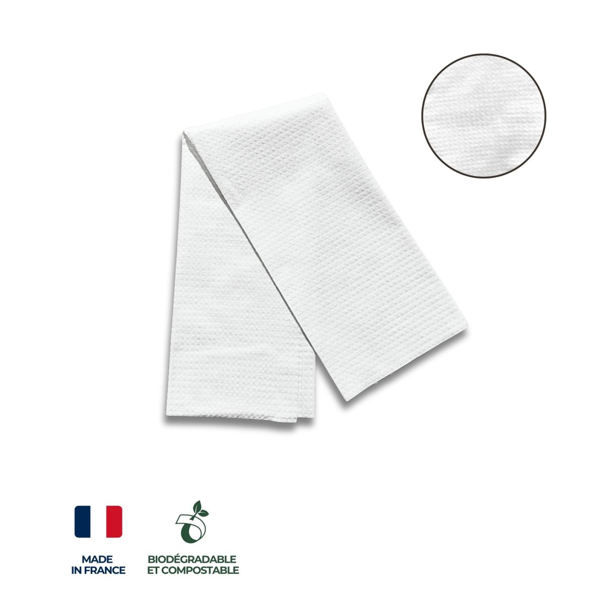La fabrication française assure une qualité irréprochable, et sa durabilité garantit une utilisation longue durée sans se détériorer, même après de multiples usages. Offrez à vos clients une expérience irréprochable, tout en respectant l’environnement grâce à ce torchon pratique et écologique.