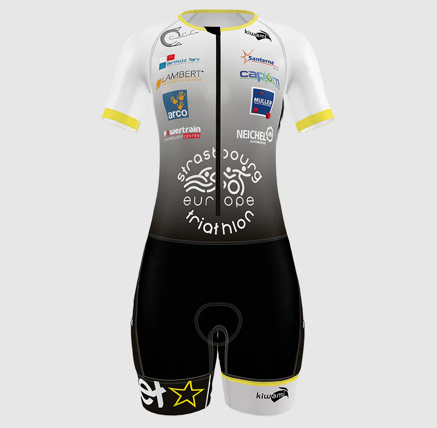 - 3 Ergo pockets : 1 grande poche dorsale et 2 poches ergonomiques sur les cuisses pour un ravitaillement éclair lors de la partie vélo;