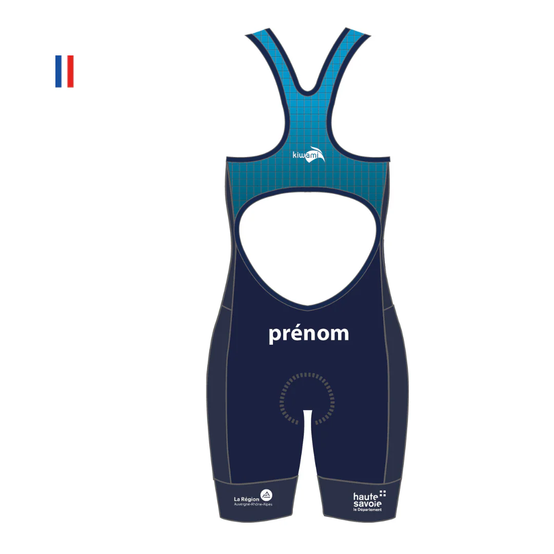 - Chamoisine “MONO PAD” anatomique pour courte à moyenne distance. Le chamois protège et améliore le confort durant la partie cyclisme et, grâce à sa coupe morphologique; ce MONO PAD ne gêne en rien la natation et la course à pied;