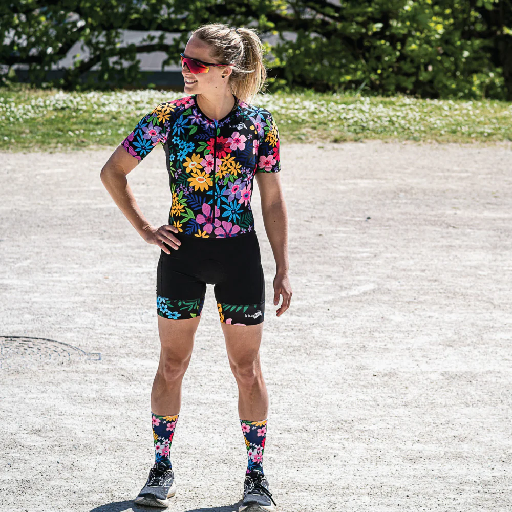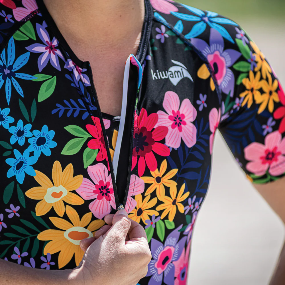 Découvrez notre nouvelle collection Spring avec cette tenue de triathlon femme » Black Flowers » conçue spécialement pour la morphologie féminine