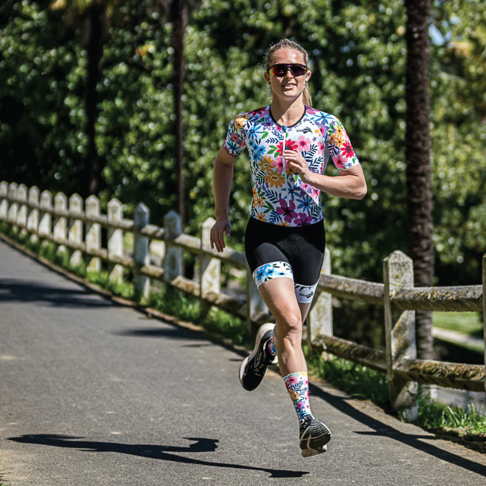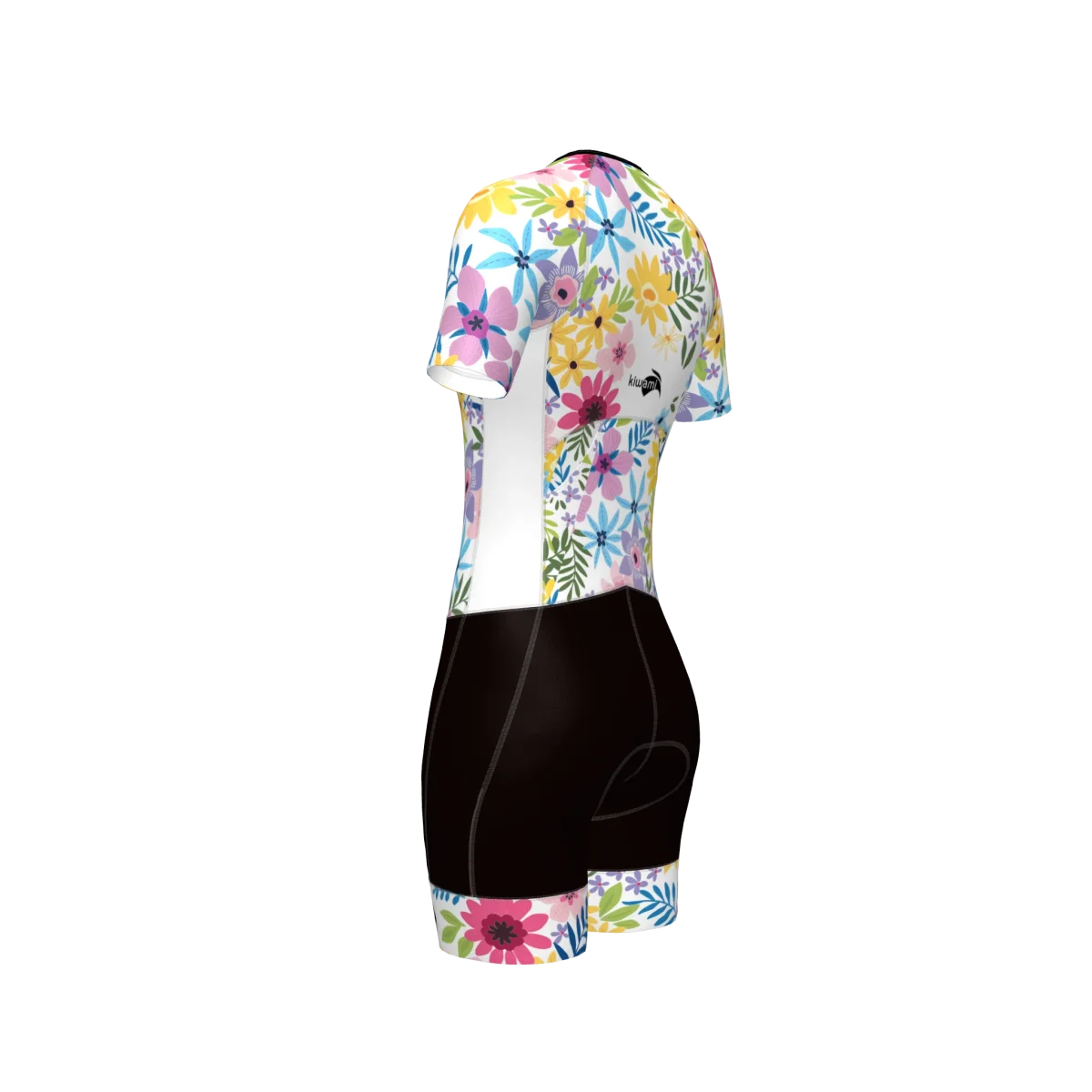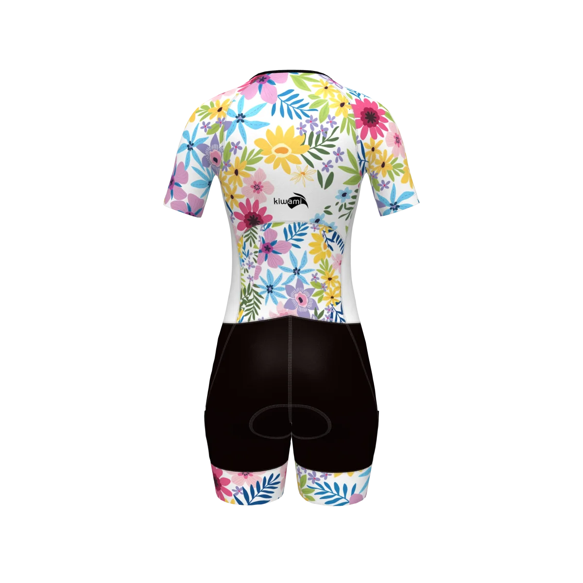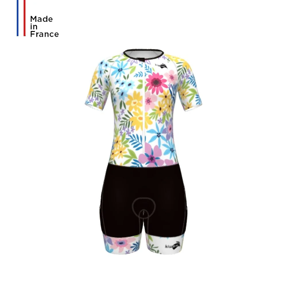 Découvrez notre nouvelle collection Spring avec cette tenue de triathlon femme » White Flowers » conçue spécialement pour la morphologie féminine
