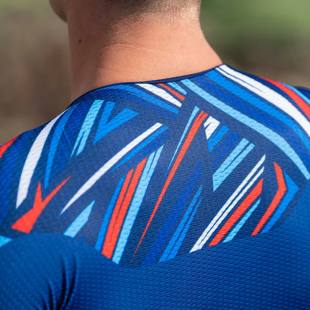 - Le Tissu AirFluence en structure 3D alvéolée est utilisé sur les bras, épaules et tout le dos. Il cumule les avantages : aérodynamisme, respirabilité et effet seconde peau.;
